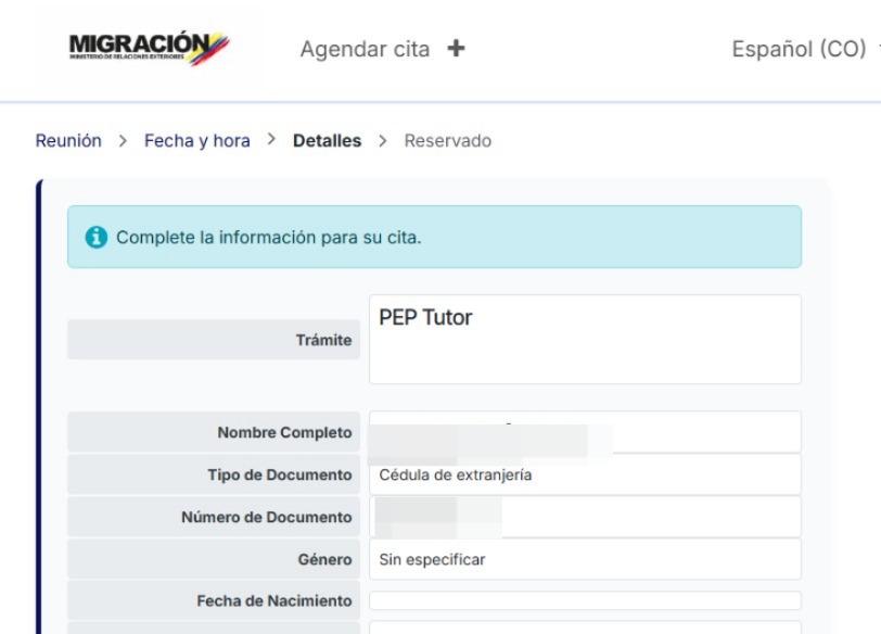 Gli appuntamenti possono essere fissati tramite la piattaforma digitale. Foto: Screenshot del sito web dell'Immigrazione Colombiana .